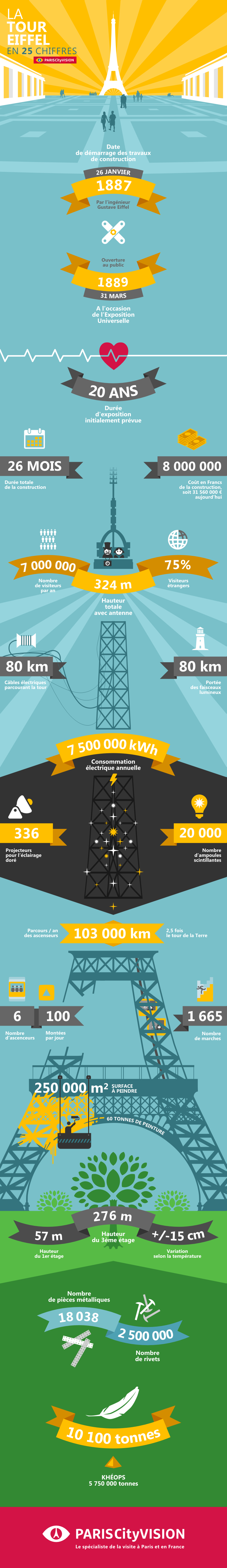 Je vous propose de découvrir des chiffres intéressants et surprenants au sujet de la Dame de Fer grâce à l’infographie ci-dessous.