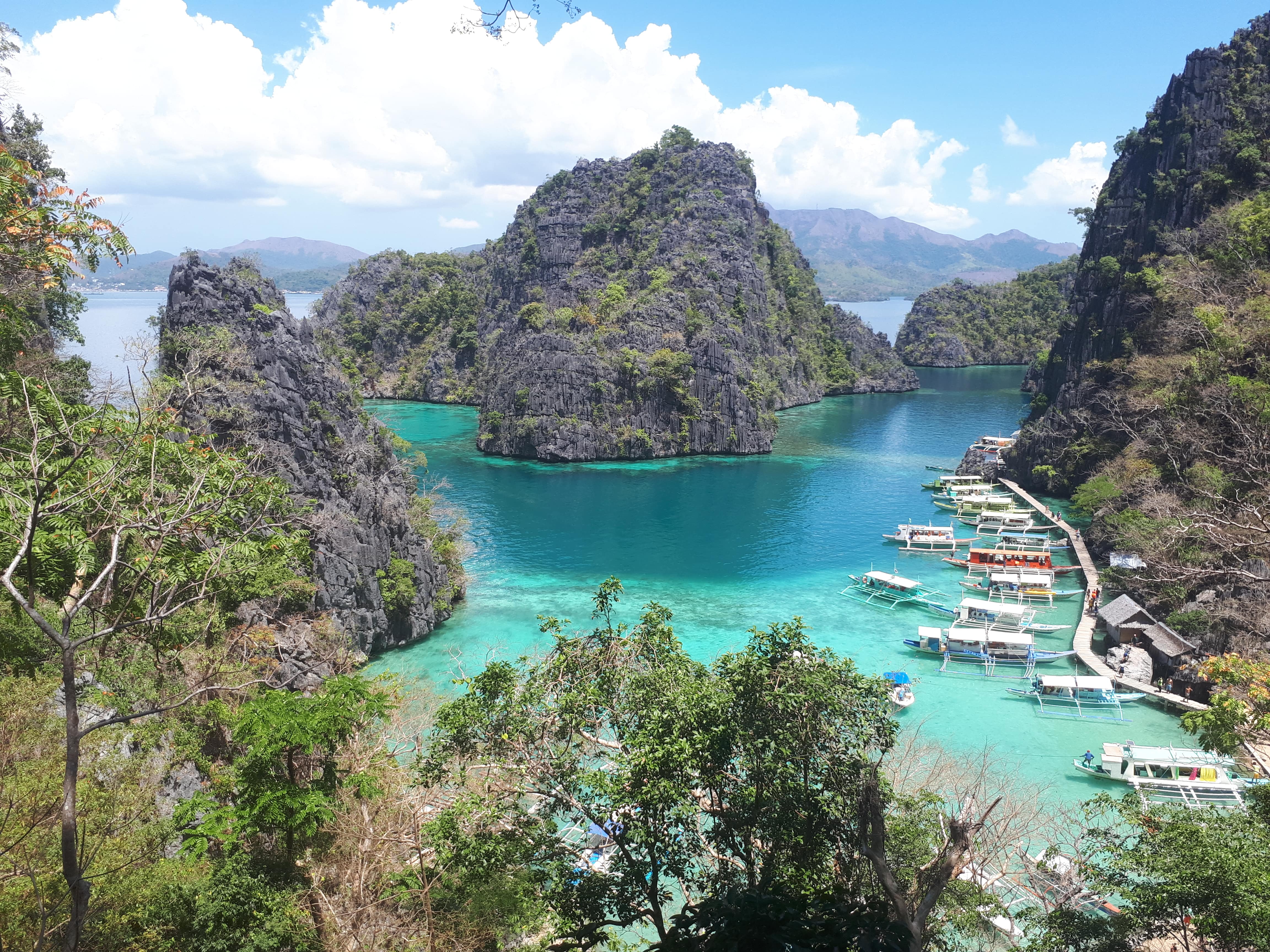 L’après-midi, nous faisons deux escales. Nous nageons et découvrons de très beaux fonds marins au niveau du Blue Lagoon, puis nageons dans le Twin Lagoon. Les paysages sont toujours très beaux, et l’eau est chaude. La visite des îles est un incontournable à Coron, c’est ici que nous avons fait les plus belles plongées aux Philippines.