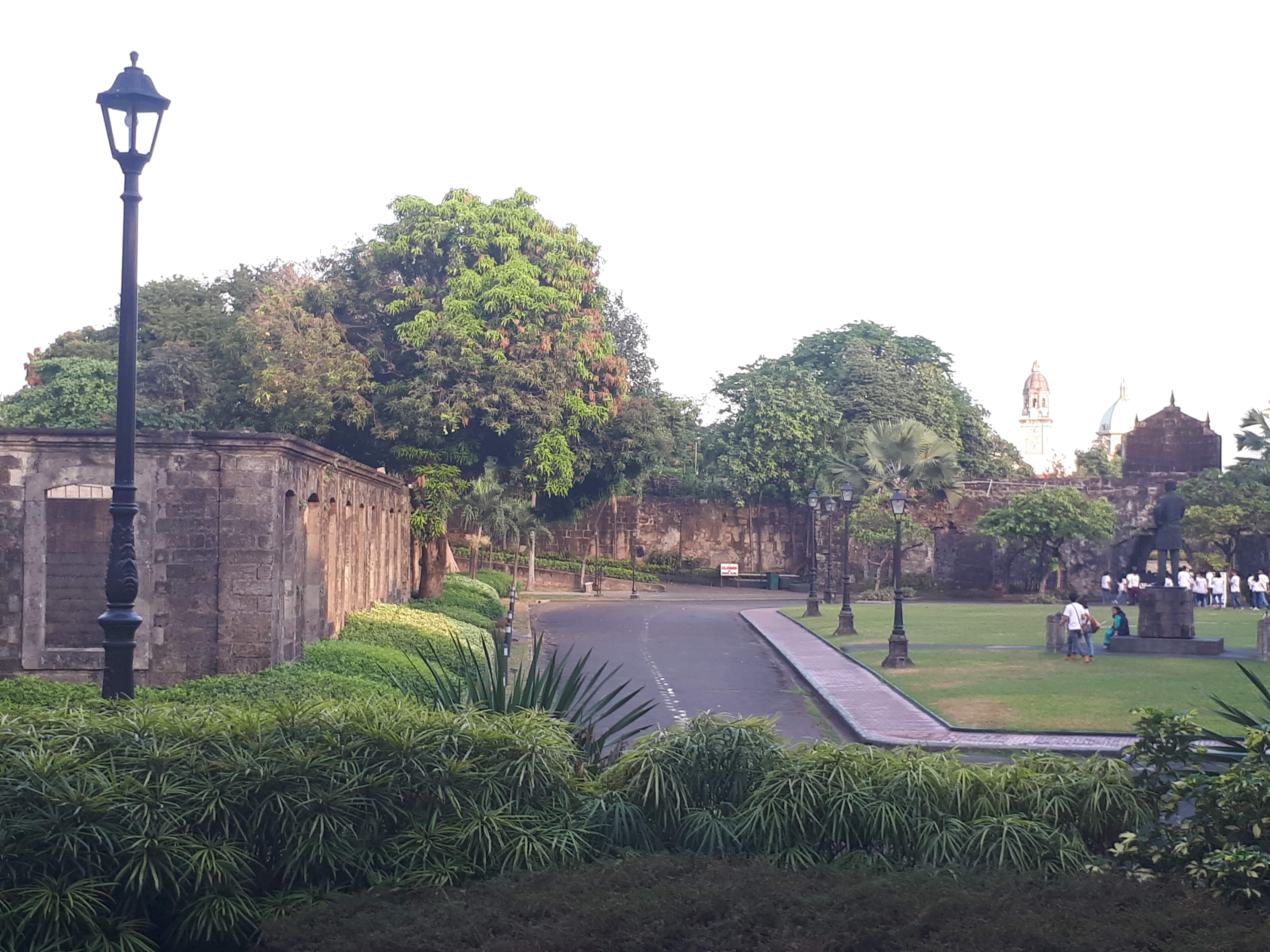 Nous laissons notre sac à dos à l’hôtel. Nous appelons un taxi ; en route pour une journée de visite de la ville de Manille. Il faut compter environ 300 pesos pour rejoindre Intramuros depuis Makati en taxi. Le trajet est assez long, bien que ce ne soit situé qu’à quelques kilomètres de notre hôtel, le trafic est dense.
