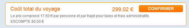 Il est nécessaire de commencer l’enregistrement pour découvrir le supplément de 48€ pour « Frais de réservation par trajet et par personne ».
