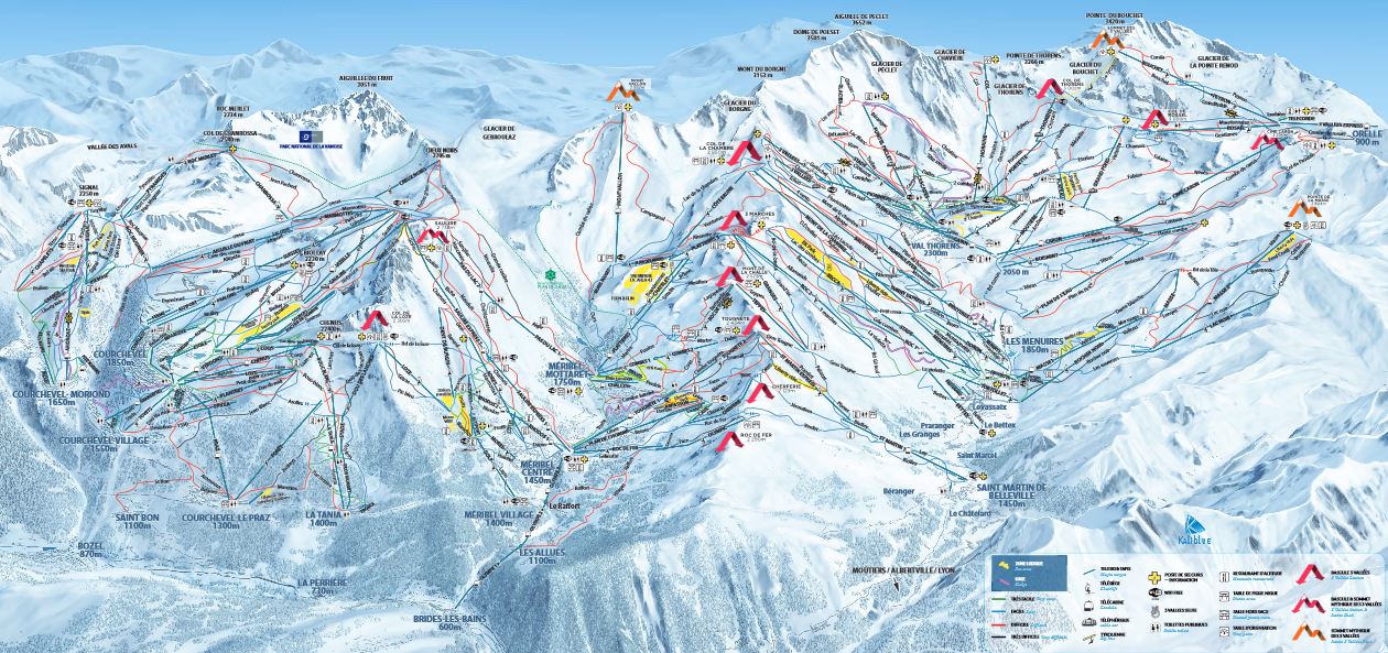 Voici ci-dessus le plan des pistes des 3 Vallées. Un conseil, consultez également sur internet le plan de la station où vous souhaitez vous rendre pour voir les pistes de façon plus détaillées.