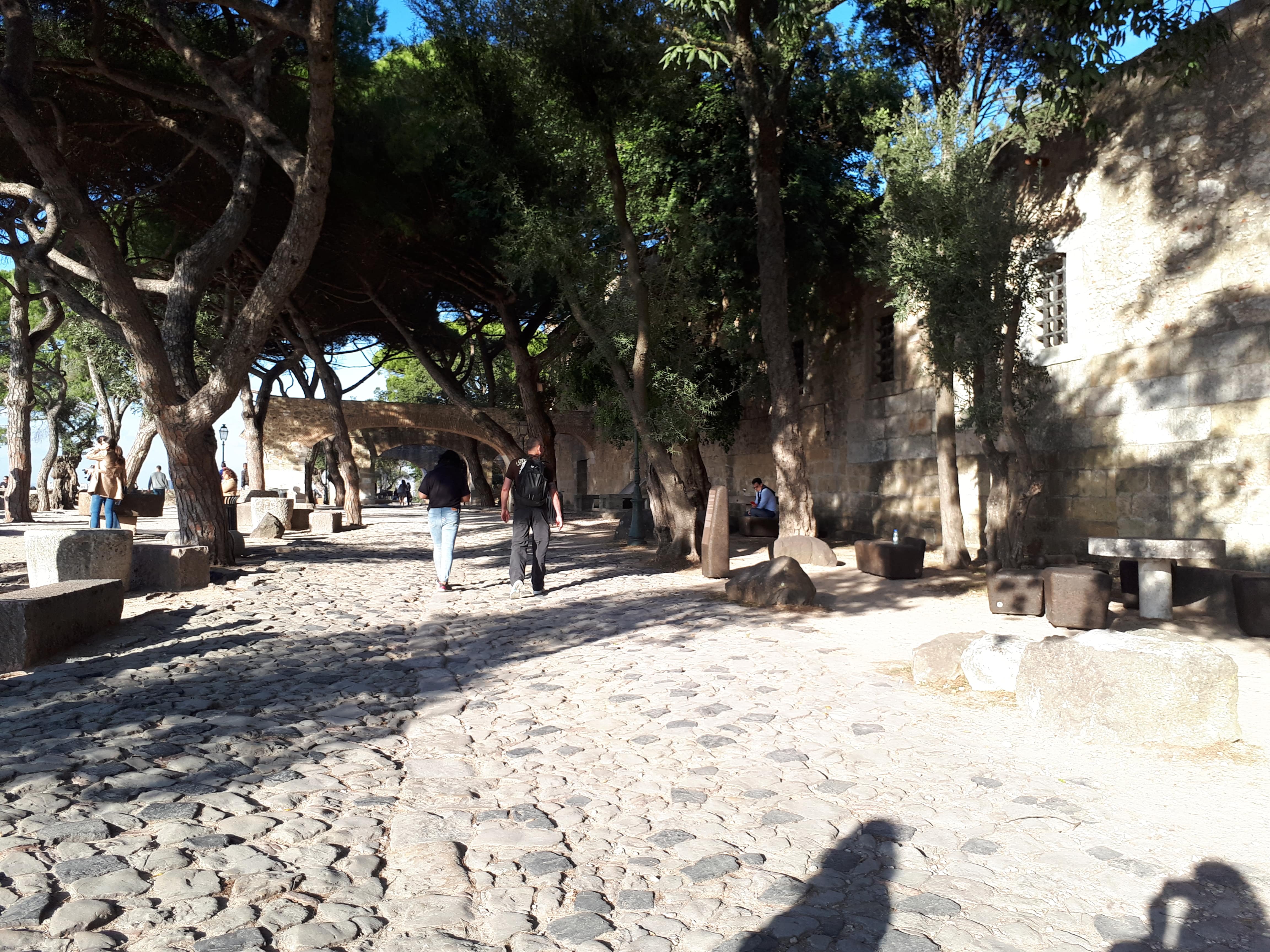 Nous prenons ensuite un ticket pour visiter le Château Saint-Georges, que nous rejoignons à pied. Le prix est un petit peu élevé, mais la découverte du château est intéressante. Construit initialement au 5ème siècle, c’est un moment de style maure rempli d’histoire. On peut parcourir les remparts et observer Lisbonne de différents points de vue.