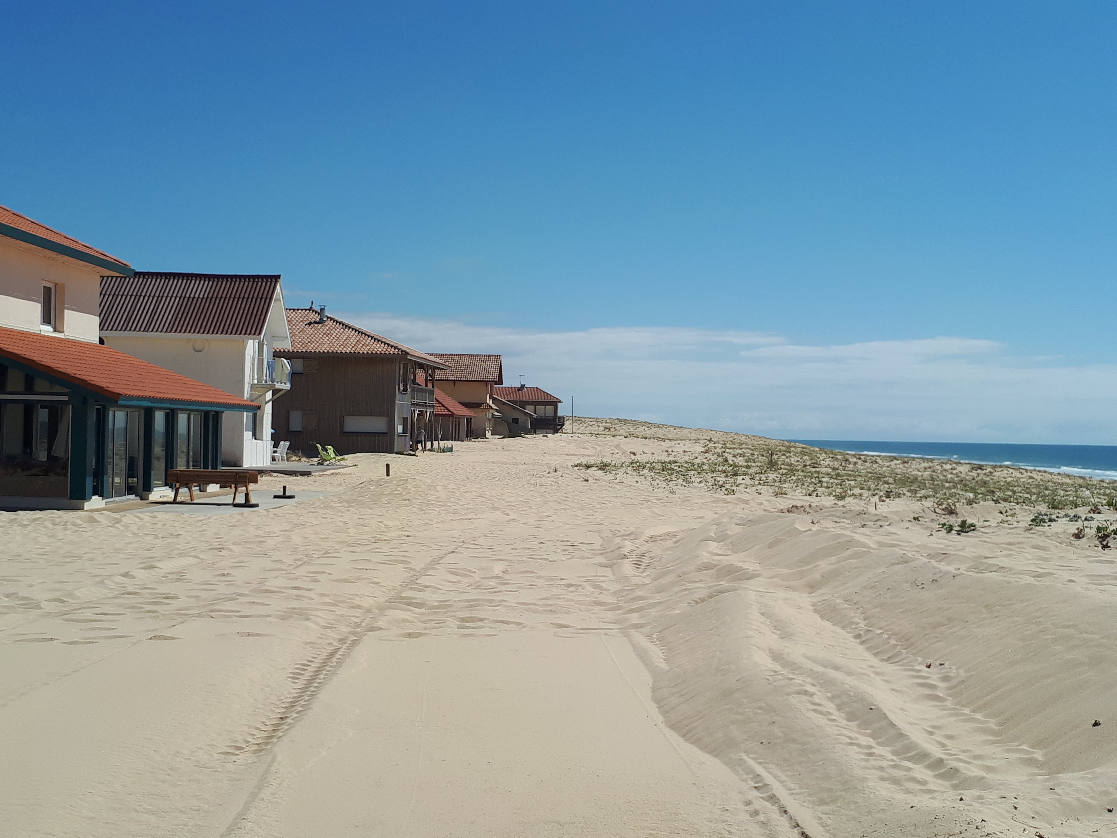 Le spot côté courant d’Huchet est réservé aux surfeurs. Nous rejoignons ensuite la grande Avenue de l’Océan en direction de la plage. Le nombre de vacanciers, français et européens, est déjà très important à cette période de l’année. Nous rejoignons le village de Linxe plus tard dans l’après-midi.