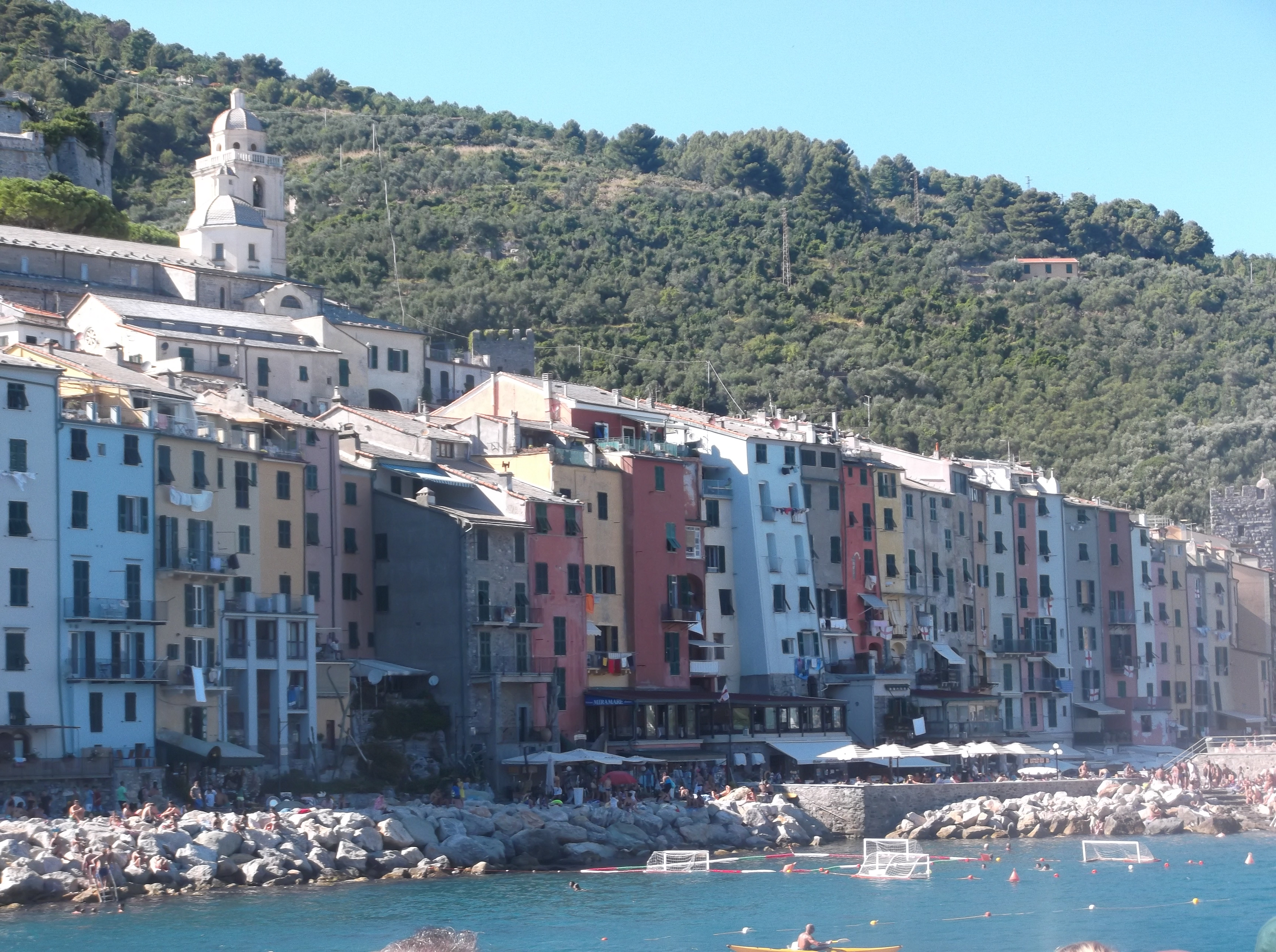 Nous avons ensuite pris le bateau à partir de Monterosso en direction de Portovenere (il n’y a pas de quai à Corniglia). Le trajet aller coûte environ 13€. Même si ce village ne fait pas parti officiellement des Cinque Terre, je vous conseille vivement de vous y rendre. Il s’agit d’une ville fortifiée. Les façades colorées de ses maisons en bord de mer sont magnifiques.
