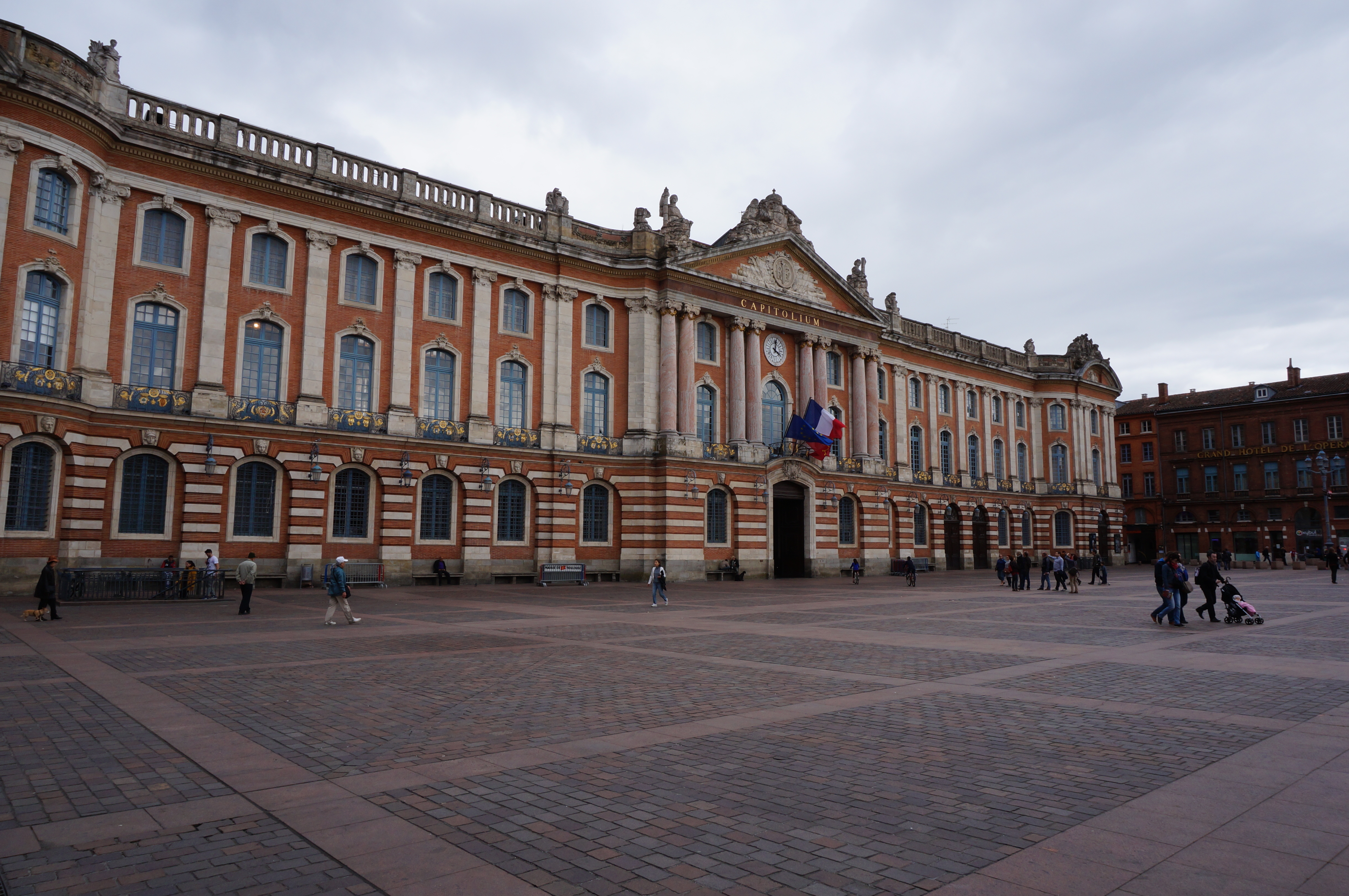 Nous sommes partis très tôt de Grenoble et nous avons rejoint en début d’après-midi un ami qui habite dans un joli village perché sur de petites collines et à une vingtaine de kilomètres de la ville rose. Nous avons consacré notre première après-midi à visiter Toulouse. Nous nous sommes promenés dans les rues du centre-ville puis nous avons rejoint la place du Capitole. Ce monument historique est situé au cœur de Toulouse. L’architecture du Capitole est très jolie, ce bâtiment de style néoclassique est fait de pierres et de briques roses.